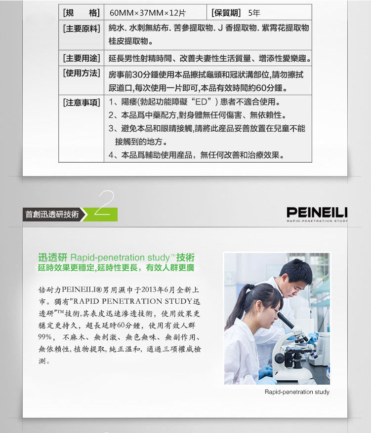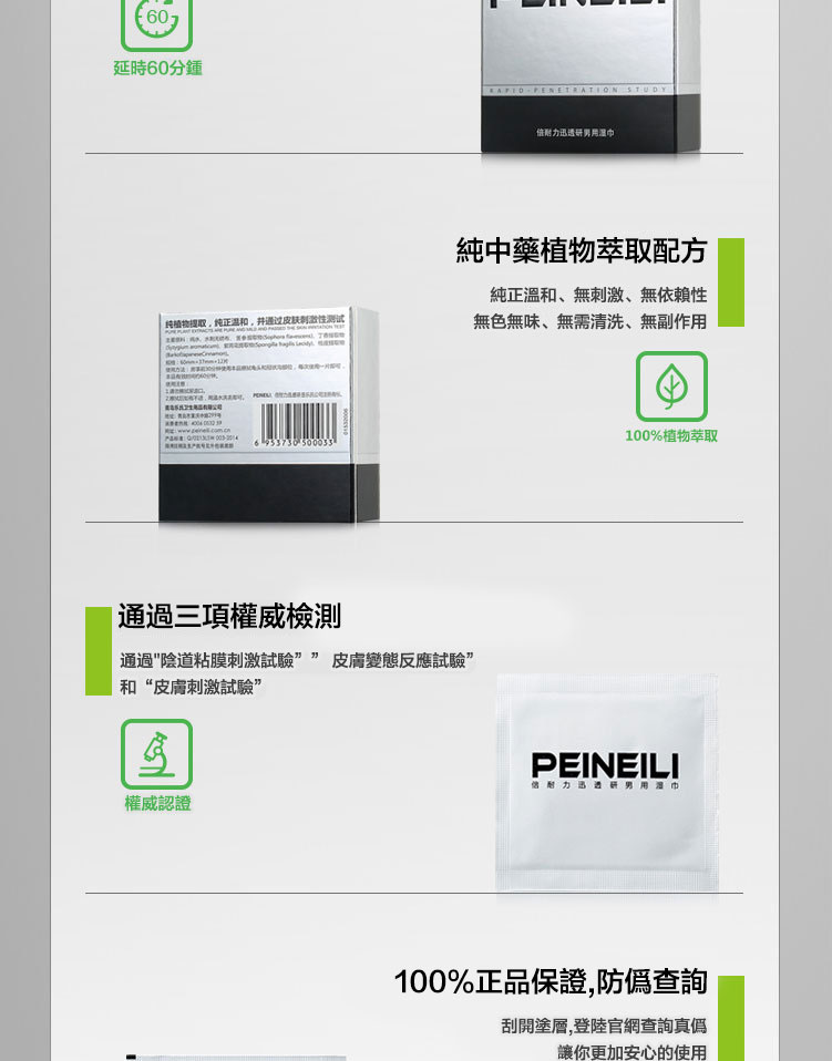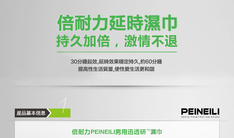 倍耐力男用延時濕巾擁有RAPID-PENETRAION STUDY迅透研技術,其表皮迅速滲透技術,使用效果更穩定更持久,超長延時60分鐘。植物提取純正溫和,無色無味、無刺激味。