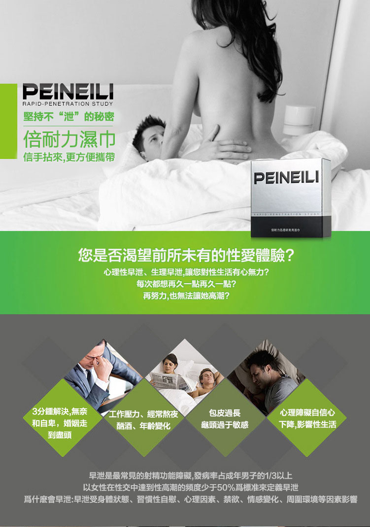 主治症狀:適合不同程度的早洩患者正常人群想延長愛愛時間手淫過度,造成時間短的男性 因心理障礙造成的房事時間短者勃起時間短,少於10分鐘的男性愛愛過程中出現中途疲軟的男性。