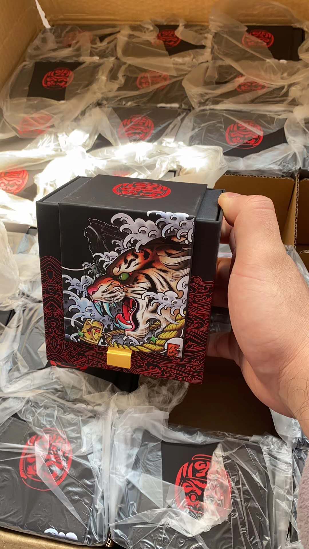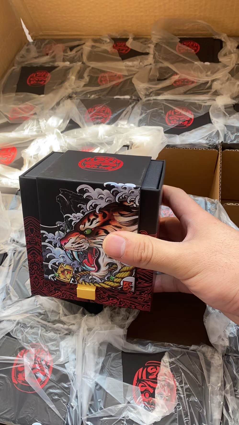 我們用透明膠帶,將包裝箱接縫處均密集封閉。