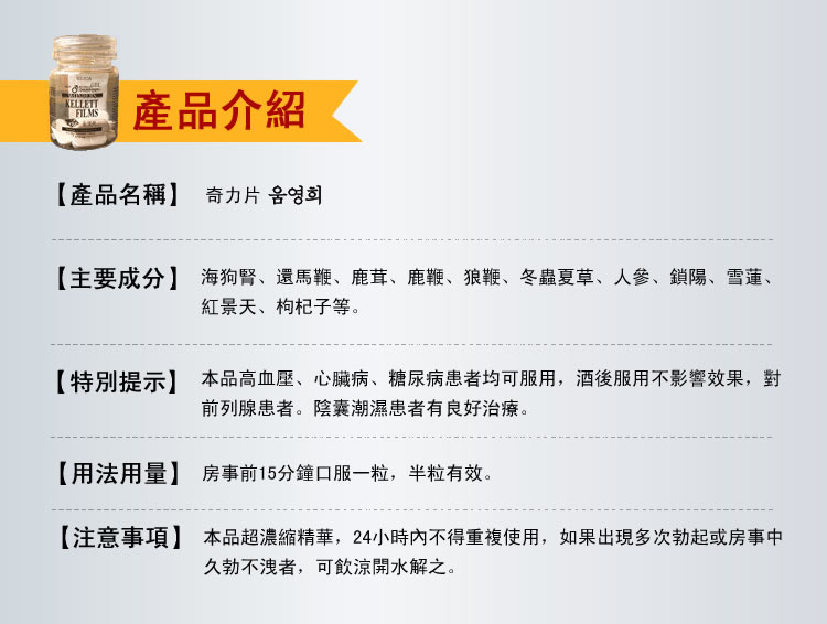 產品名稱:韓國奇力片KELLETT FILMS補腎生精增大延時